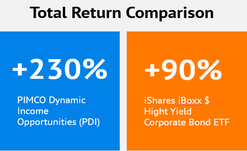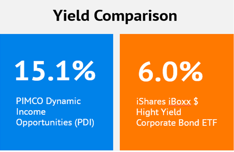 HYG is run by a computer. PIMCO Dynamic Income Opportunities Fund (PDI), on the other hand, is run by a bond-buying genius.