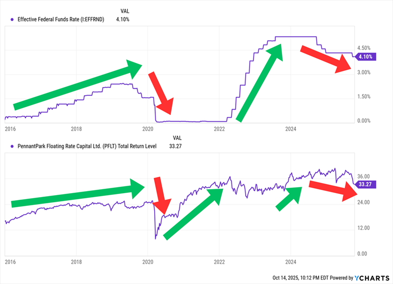 Like with CSWC, it’s clear that rates are the straw that stirs PFLT’s performance.