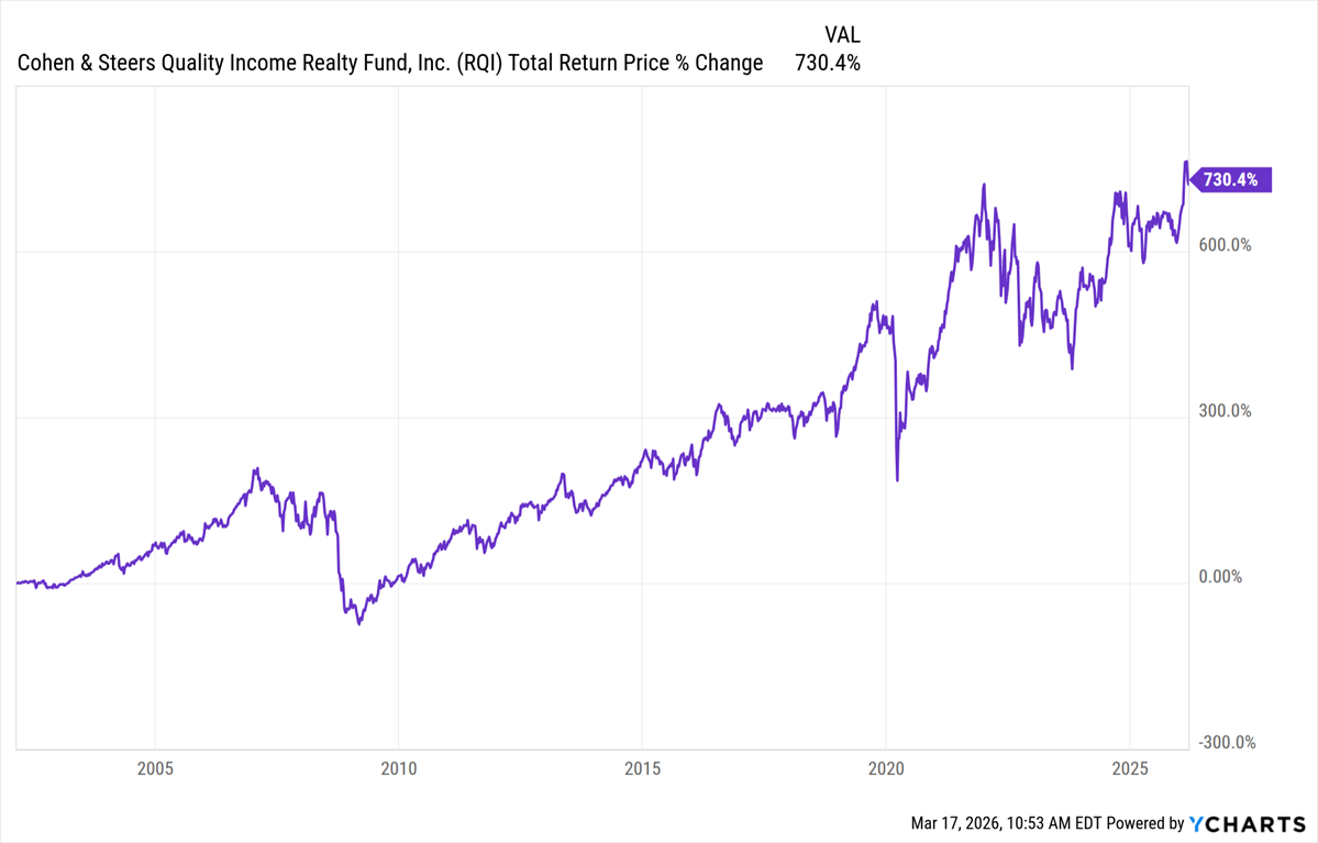 Enter the Cohen & Steers Quality Income Realty Fund (RQI), which has long been a solid option for investors looking for real estate exposure. Instead of buying property directly, or originating mortgages itself, RQI buys shares of REITs, companies that own real estate—everything from doctors’ offices to cell towers—and hands most of the rental income back to investors as dividends.