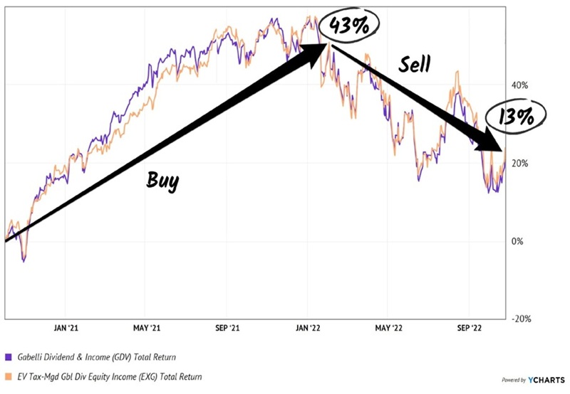 So, do we buy and hold EXG and GDV forever, collecting their monthly dividends merrily along the way? Not quite.