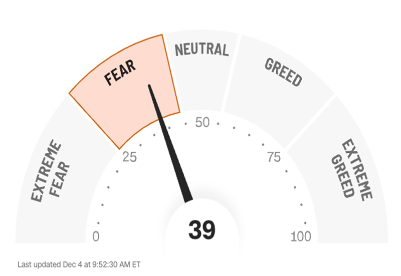 Add to that the fact that investors are skittish, set to sell on any bad news. The CNN Fear & Greed Index tells the tale: