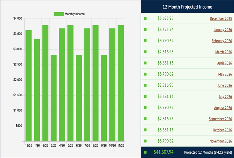And—here’s the cool part—see how MAIN’s dividend fits within the context of my overall income for 2026. Instead of a spreadsheet or an AI text-dump, I get a clear, visual road map of my cash flow: