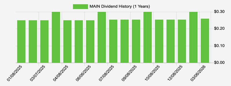 I can also see MAIN’s dividend history for the last year, five years or ten years: