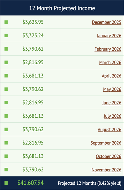 How are we looking for January? We have $3,325.24 in dividends likely to drop into our brokerage account. This is the type of revenue projection that a savvy business owner knows.
