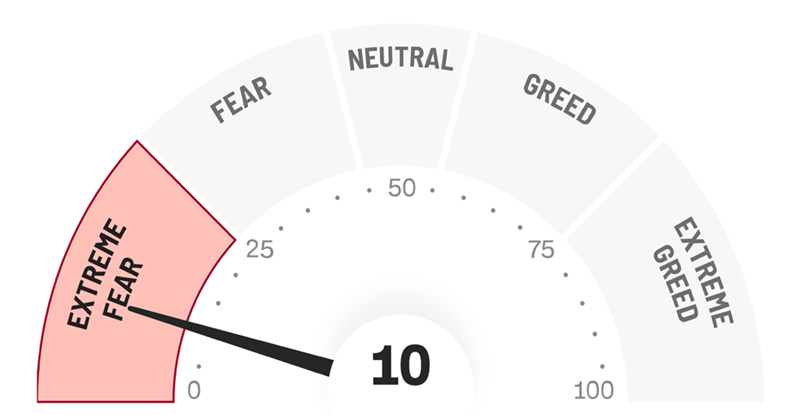 And oh boy, do things look bleak. The so-called pros are running too. CNN’s Fear and Greed Index—which mashes together seven market indicators into a single “mood ring” for Wall Street—just hit “Extreme Fear”: