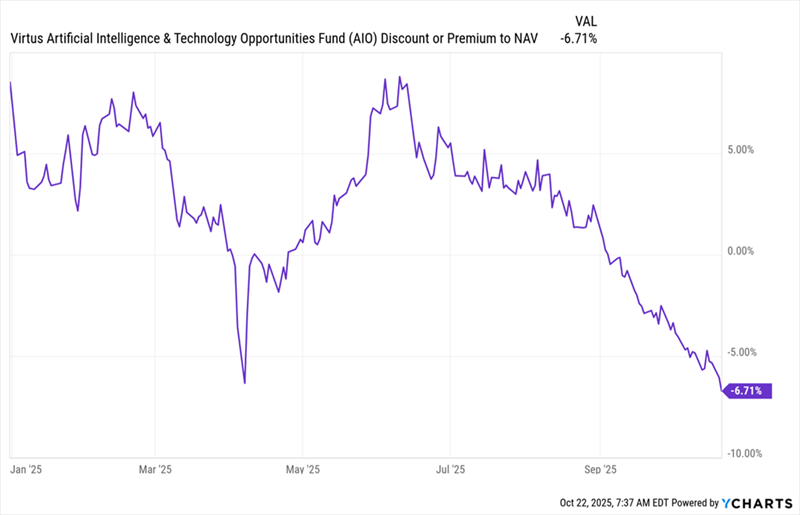 One CEF is giving us just such a nonsensical discount today: a 7.7%-payer called the Virtus Artificial Intelligence & Technology Opportunities Fund (AIO).