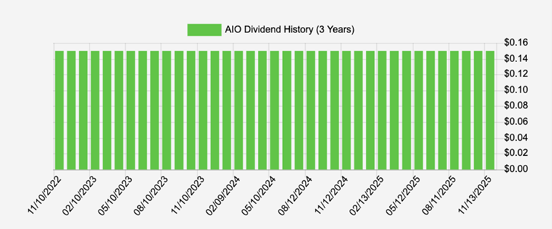 That’s where AIO comes back into the picture. It’s a diversified play on AI that rewards investors with that healthy 7.7% dividend, which comes our way monthly.