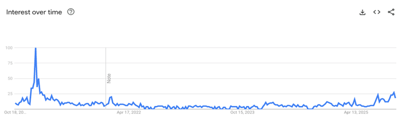 You can see at the right side of this chart that the term has been gaining since hitting a low in September 2024. It’s now at its highest point in almost five years.