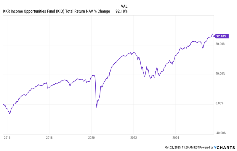 Moreover, KIO has been around for over a decade and—despite rising interest rates, a pandemic and other turmoil—has steadily increased its net asset value (NAV, or the value of its underlying portfolio) in that time.