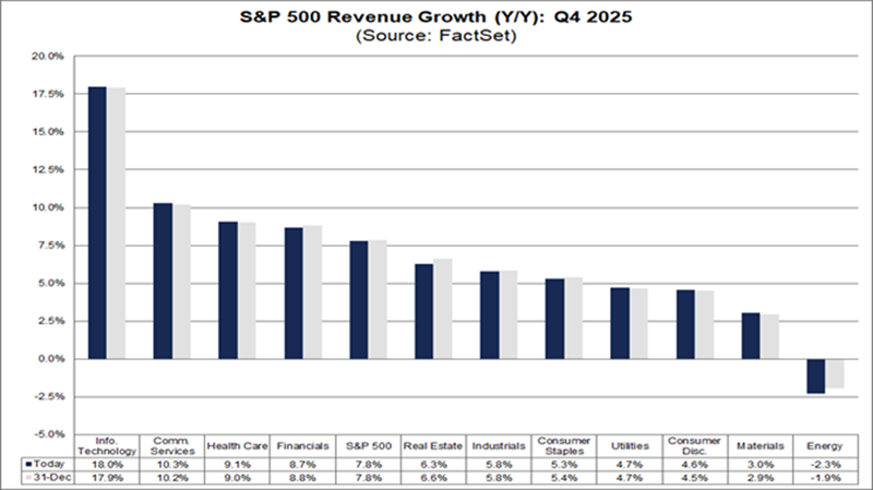 So far, earnings have been okay, but what’s really key is sales, which rose 7.8% across S&P 500 companies in the fourth quarter. That, again, is a sign the economy is doing well.