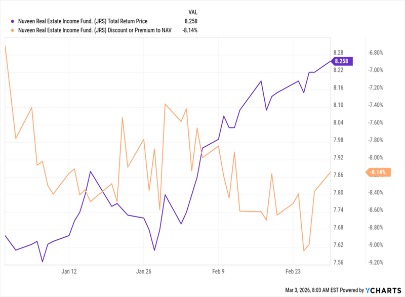 I didn’t mention those last four REIT examples randomly, by the way: They’re among the top holdings of the Nuveen Real Estate Income Fund (JRS), a holding in the CEF Insider portfolio.