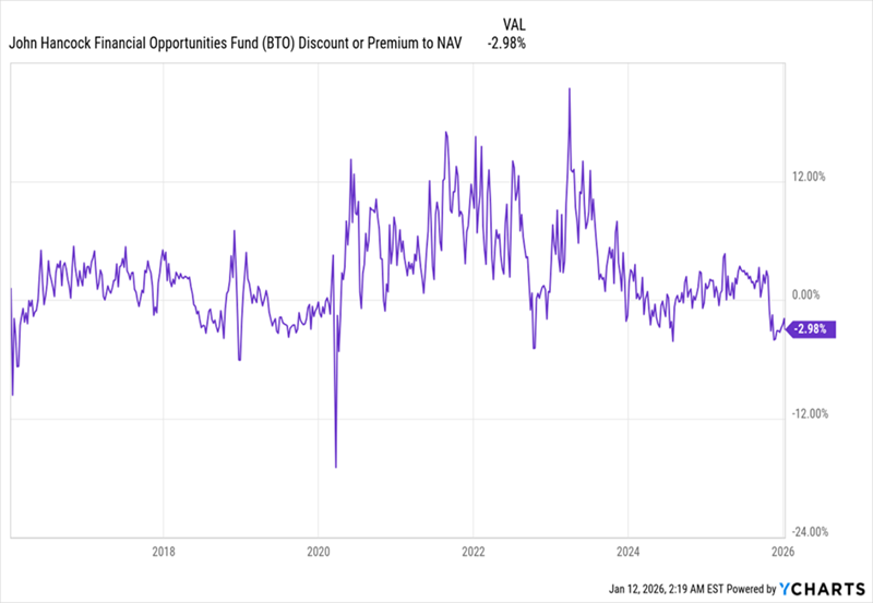 What doesn’t make sense is that this premium has suddenly dropped to a discount. That’s a key signal that a contrarian move into BTO is worth considering now: It gets us in on a low-profile fund (and sector) that looks set to go on a strong run.