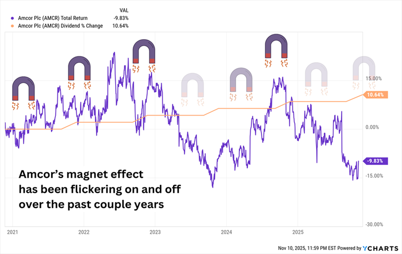 Amcor (AMCR) is a 41-year dividend grower hiding in plain sight. Its own merger hangover has the stock cheap while its payout has climbed past 6%.