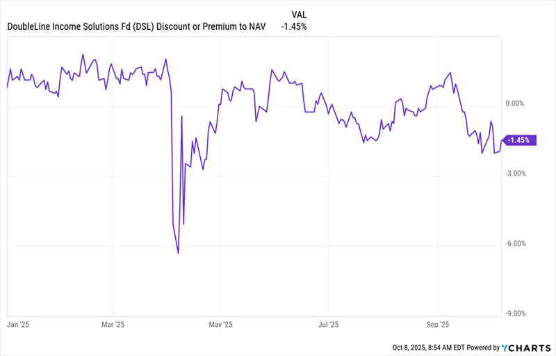 And we’ve got another sweet setup, too, courtesy of DSL’s discount to net asset value (NAV, or the value of its underlying portfolio).