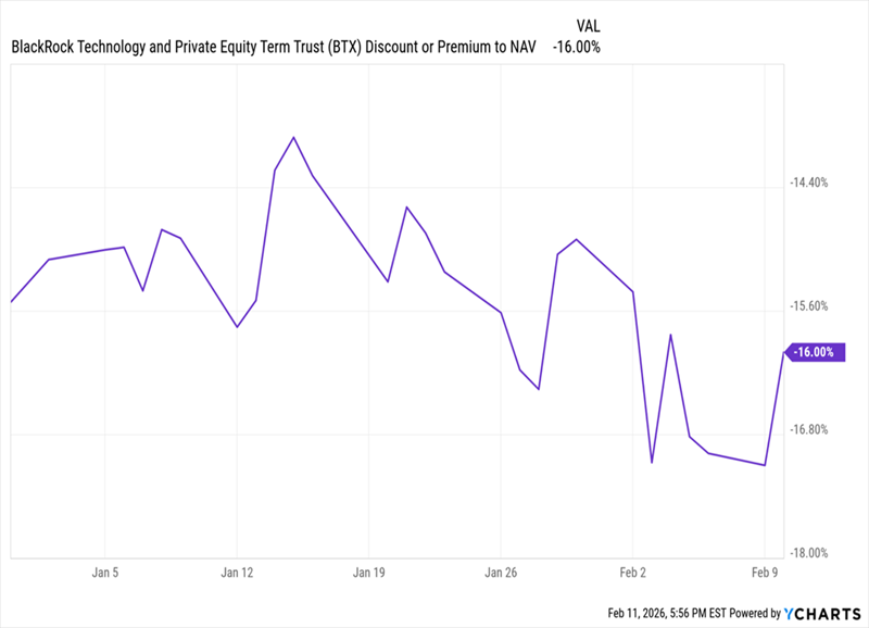And since most CEF investors are more conservative—and thus more easily spooked by negative headlines—this fund’s discount tends to fluctuate more widely than that of the more broad-based ASG. The recent software selloff has pushed it deeper into bargain territory.