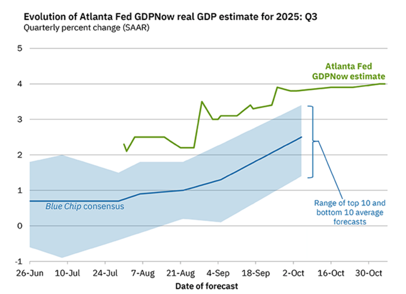 The Atlanta Fed’s thermometer has GDP at a sizzling 4%. Four percent! In today’s AI-fueled, efficiency-obsessed economy, the old recession playbook simply doesn’t apply.